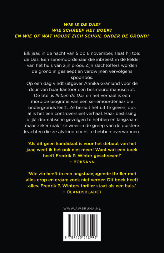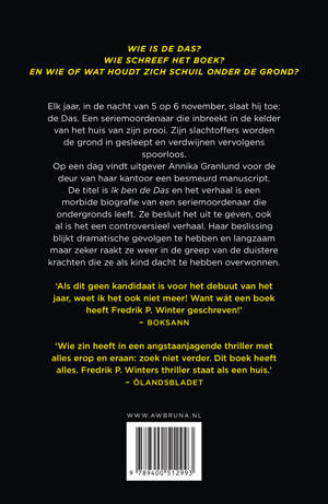 Op een dag vindt uitgever Annika Granlund voor de deur van haar kantoor een met modder besmeurd manuscript. De titel is De Das en het verhaal is een morbide biografie van een seriemoordenaar die ondergronds leeft. Annika ziet kans met dit manuscript haar noodlijdende uitgeverij te redden, die failliet zal gaan als ze niet snel een bestseller vindt.