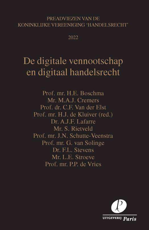 De preadviezen van de Koninklijke Vereeniging Handelsrecht van dit jaar illustreren het brede perspectief dat de Vereeniging voor ogen staat bij de bestudering van actuele ontwikkelingen op het terrein van het handels- en ondernemingsrecht. Waar vorig jaar het thema ‘duurzaamheid’ centraal stond, is dat dit jaar het thema digitalisering en blockchain. Die thema’s liggen in elkaars verlengde. Digitalisering kan een instrument zijn om duurzaamheid te bevorderen. Dit jaar wordt dit thema verder uitgediept. Kernthema’s daarbij zijn de langzamerhand te ontwaren contouren van de ‘digitale vennootschap’ die uit de samensmelting van praktijk en regelgeving lijkt op te rijzen en de invloed van digitalisering op het handelsrecht. Een en ander kan meebrengen dat vertrouwde en klassieke begrippen uit het handels- en ondernemingsrecht, potentieel danig van aard kunnen veranderen. In de preadviezen wordt een en ander in kaart gebracht door een keur van auteurs.