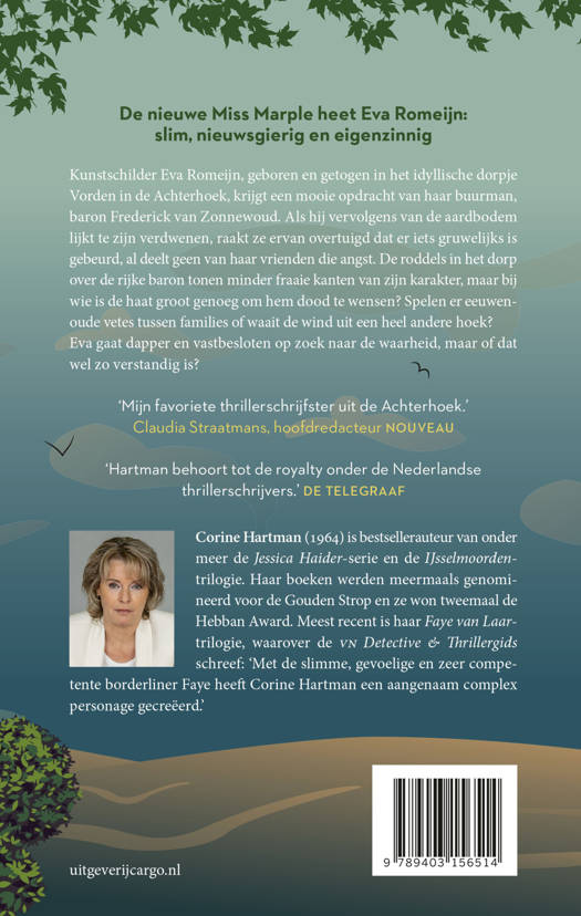 Kunstschilder Eva Romeijn, geboren en getogen in het idyllische dorpje Vorden in de Achterhoek, krijgt een mooie opdracht van haar buurman, baron Frederick van Zonnewoud. Als hij vervolgens van de aardbodem lijkt te zijn verdwenen, raakt ze ervan overtuigd dat er iets gruwelijks is gebeurd, al deelt geen van haar vrienden die angst. De roddels in het dorp over de rijke baron tonen minder fraaie kanten van zijn karakter, maar bij wie is de haat groot genoeg om hem dood te wensen? Spelen er eeuwenoude vetes tussen families of waait de wind uit een heel andere hoek?