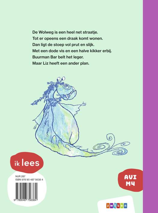 In de poort naar Liz’ huis ligt iets heel geks. Het is groot en groen, en het glimt. Een draak! Gelukkig is Liz gek op dieren en zorgt ze supergoed voor haar nieuwe drakenvriend. Maar buurman Bar wíl helemaal geen draak in zijn straat en hij belt het leger. Als dat maar goed gaat … Hoe kan Liz de draak redden?