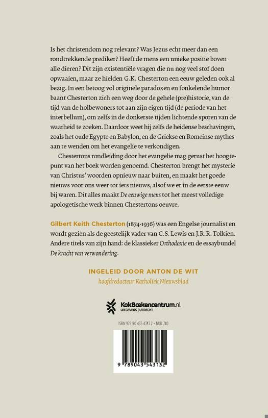 In ‘De eeuwige mens’ laat de Engelse journalist en essayist G.K. Chesterton zien dat het christendom niet slechts een van de vele mythes is, maar een verhaal dat alle mythes overstijgt. Er is geen enkele andere religie waarin de Schepper zelf mens werd om zijn schepping te redden. Met fonkelende humor, meeslepende zinnen en diepe inzichten ontvouwt Chesterton een werk dat even tijdloos en uitdagend is, met als resultaat een ongeëvenaard betoverende geschiedenis van de mens, en de menswording van God.