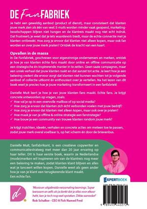 Je krijgt inzichten, ideeën, verhalen en concrete acties om meteen toe te passen, zodat jouw merk overal voelbaar is, op het scherm én door de brievenbus.Danielle Muit, fanfabrikant, is een creatieve copywriter en communicatiestrateeg met meer dan 20 jaar ervaring op haar teller. Dit is haar eerste boek, waarin ze Nederlandse (mode)merken wil inspireren om van de klantreis nog meer een beleving te maken, zodat klanten klant blijven en alles wat je lanceert willen kopen. Danielle weet als geen ander hoe je van je klant een terugkerende klant maakt. Een echte fan.