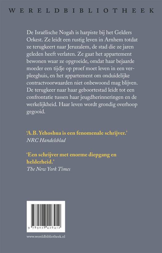 De Israëlische Noga is harpiste bij het Gelders Orkest. Ze leidt een rustig leven in Arnhem, totdat ze door omstandigheden is gedwongen een aantal maanden terug te keren naar Jeruzalem. In de wijk waar ze is opgegroeid en waar ze tot haar scheiding heeft gewoond, is veel veranderd. De oude bewoners hebben plaatsgemaakt voor een steeds grotere groep ultra-orthodoxe Joden met hun traditionele zwarte gewaden. Om de tijd te doden en wat geld bij te verdienen, treedt Noga op als figurante in films en tv-series die in Jeruzalem worden opgenomen. Daardoor dringt het besef tot haar door dat ze na haar scheiding ook een figurante in haar eigen leven is geworden. Ze wordt verscheurd door een innerlijk conflict: blijven tegemoetkomen aan de verwachtingen van haar omgeving, of haar eigen geluk en verlangens nastreven. Yehoshua's inzicht in de menselijke psyche en zijn grootse stilistische vermogen maken van Noga een van de krachtigste en meest veelzijdige vrouwen in de hedendaagse literatuur.
