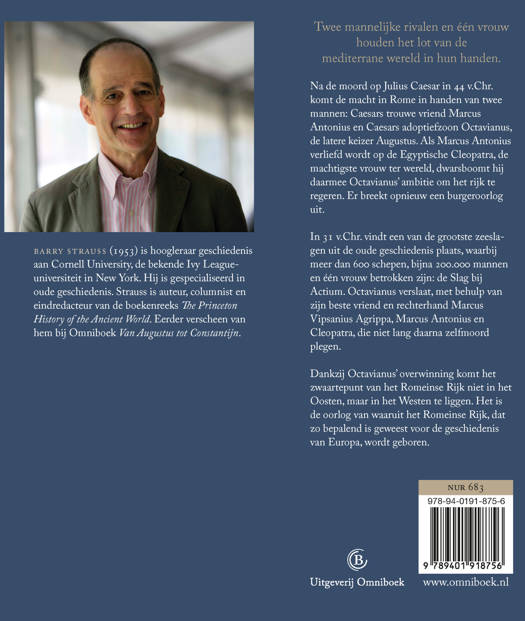 De Slag bij Actium in 31 v.Chr., die bijna 200.000 mensen het leven kostte, was een scharnierpunt in de geschiedenis. Octavianus, de latere keizer Augustus, won de zeeslag van misschien wel het bekendste liefdespaar uit de geschiedenis: Marcus Antonius en Cleopatra. Hun vloot werd bijna geheel verslagen en Marcus Antonius en Cleopatra pleegden zelfmoord. Hun drie gezamenlijke kinderen werden in Rome opgevoed door Octavia, de zus van Octavianus en ex-vrouw van Marcus Antonius. Hadden Marcus Antonius en Cleopatra gewonnen, dan was wellicht Alexandrië de hoofdstad geworden van het Romeinse Rijk. Hoogleraar geschiedenis Barry Strauss vertelt op meeslepende wijze het verhaal van deze bekende slag.