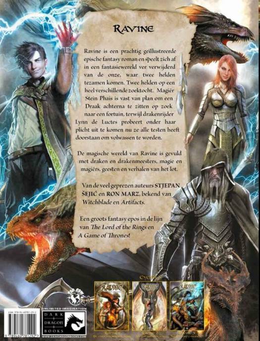 Ravine is een prachtige, geïllustreerde epische fantasy-roman die zich afspeelt in een fantasiewereld. Ravine is het verhaal van twee helden op twee verschillende zoektochten. Magiër Stein Phais is vast van plan om een Draak achterna te zitten op zoek naar een fortuin, terwijl drakenrijder Lynn de Luctes probeert onder haar plicht uit te komen nu ze alle testen heeft doorstaan om volwassen te worden. Maar Ravine is ook het verhaal van Nebezial Asheri die gedreven wordt door zijn wens om zijn gestorven geliefden weer in zijn armen te kunnen houden. Daartoe wil hij het ravijn, ontstaan in een oude magische strijd, dichten en hen uit het dodenrijk terug te halen. De complete Alliantie werkt hem tegen maar de grootste tegenstand zal hij ondervinden van een groepje jongelui, waaronder een afvallige magiër, een opstandige drakenridder en hun bondgenoten.