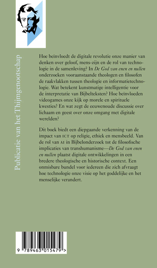 In De God van enen en nullen onderzoeken theologen en filosofen de invloed van informatietechnologie op religie, ethiek en het mensbeeld. De bundel behandelt thema’s zoals de rol van kunstmatige intelligentie in Bijbelinterpretatie, de morele implicaties van videogames, en de betekenis van lichaam-geestrelaties in een digitale context. De bijdragen plaatsen digitale ontwikkelingen in een theologische en historische context, met aandacht voor vragen rond transhumanisme, digitale theologie en de impact van technologie op geloofsbeleving. Het boek is zowel methodologisch als filosofisch van aard, en biedt een unieke kijk op hoe technologie onze visie op het goddelijke en menselijke verandert.