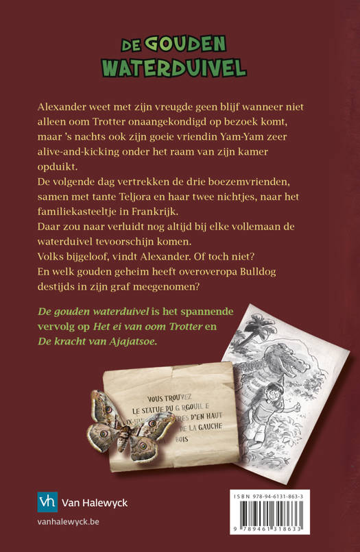 Alexander weet met zijn vreugde geen blijf wanneer niet alleen oom Trotter onaangekondigd op bezoek komt, maar ’s nachts ook zijn goeie vriendin Yam-Yam zeer alive-and-kicking onder het raam van zijn kamer opduikt. De volgende dag vertrekken de drie boezemvrienden, samen met tante Teljora en haar twee nichtjes, naar het familiekasteeltje in Frankrijk. Daar zou naar verluidt nog altijd bij elke vollemaan de waterduivel tevoorschijn komen. Volks bijgeloof, vindt Alexander. Of toch niet? En welk gouden geheim heeft overoveropa Bulldog destijds in zijn graf meegenomen?