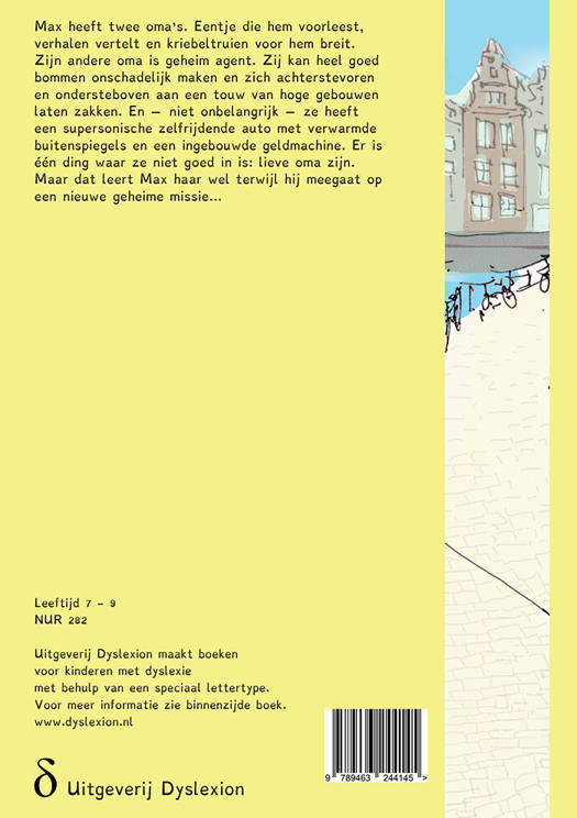 Een hilarisch nieuw boek van drievoudig Kinderjury-winnares Manon Sikkel, auteur van IzzyLove, Elvis Watt en Slimpie Dimpie Wonderkind. Max heeft twee oma’s. Eén oma is dol op haken en puzzels maken. De andere oma is geheim agent. Op vrijdag gaat Max altijd naar zijn puzzeloma en kijken ze de hele middag tv. Maar op een dag is puzzeloma ziek en komt zijn andere oma hem ophalen. Ze draagt een tijgerpak met zonnebril en rijdt in een supersnelle auto. Ze heeft een afspraak met een spion uit China. En ze moet zorgen dat niemand een bom legt onder het paleis op de Dam... Een boek met veel humor, om zelf te lezen als je 7 jaar of ouder bent. Met vrolijke illustraties van Katrien Holland.