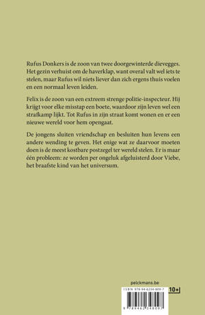 Rufus Donkers is de zoon van twee doorgewinterde dievegges. Het gezin verhuist om de haverklap, want overal valt wel iets te stelen, maar Rufus wil niets liever dan zich ergens thuis voelen en een normaal leven leiden. Felix is de zoon van een extreem strenge politie-inspecteur. Hij krijgt voor elke misstap een boete, waardoor zijn leven wel een strafkamp lijkt. Tot Rufus in zijn straat komt wonen en er een nieuwe wereld voor hem opengaat. De jongens sluiten vriendschap en besluiten hun levens een andere wending te geven. Het enige wat ze daarvoor moeten doen is de meest kostbare postzegel ter wereld stelen. Er is maar één probleem: ze worden per ongeluk afgeluisterd door Viebe, het braafste kind van het universum.