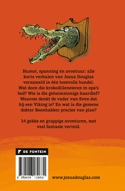 Humor, spanning en avontuur: alle korte verhalen van Jozua Douglas verzameld in één bomvolle bundel. Wat doen die krokodilleneieren in opa's bed? Wie is die geheimzinnige haardief? Waarom denkt de vader van Sven dat hij een Viking is? En wat is die gemene dokter Beenhakker precies van plan?