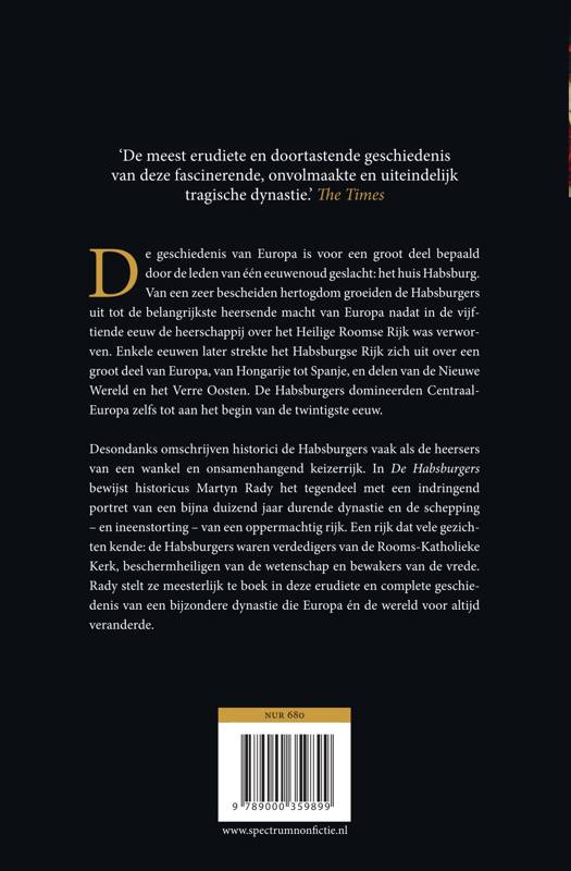 Desondanks omschrijven historici de Habsburgers vaak als de heersers van een wankel en onsamenhangend keizerrijk. Rady bewijst het tegendeel en toont ons hoe de Habsburgers zichzelf beschouwden als beschermers van de Rooms-Katholieke Kerk, beschermheiligen van de wetenschap en bewakers van de vrede. Het resulteert in een complete geschiedenis van een bijzondere dynastie die Europa én de wereld voor altijd veranderde.