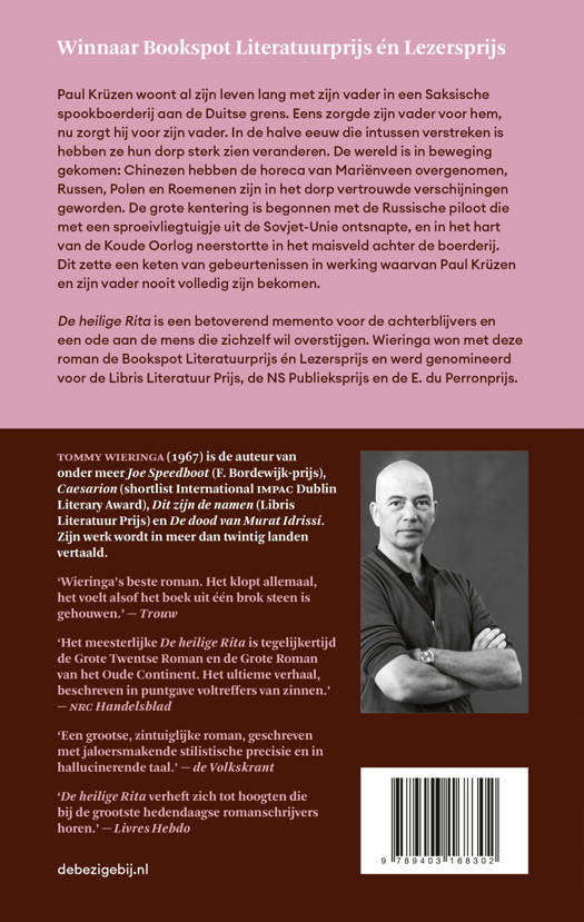 De heilige Rita is een betoverend memento voor de achterblijvers en een ode aan de mens die zichzelf wil overstijgen. Wieringa won met deze roman de Bookspot Literatuurprijs én Lezersprijs en werd genomineerd voor de Libris Literatuurprijs, de NS Publieksprijs en de E. du Perronprijs. Van het boek werden meer dan 150.000 exemplaren verkocht.