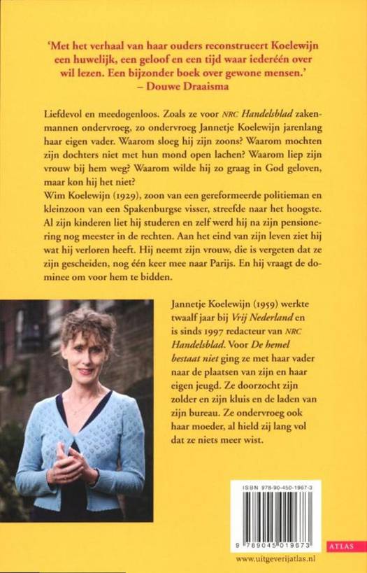 Jannetje Koelewijn bevraagt haar vader jarenlang , liefdevol, en meedogenloos. Waarom sloeg hij zijn zoons? Waarom mochten zijn dochters niet met open mond lachen? Waarom liep zijn vrouw bij hem weg? Waarom wilde hij zo graag in God geloven, maar kon hij het niet?