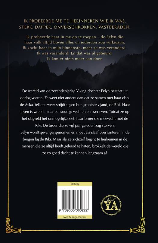 De wereld van de zeventienjarige Viking-dochter Eelyn bestaat uit oorlog voeren. Ze weet niet anders dan dat ze samen met haar clan, de Aska, telkens weer strijdt tegen hun grootste vijand, de Riki. Haar leven is wreed, maar eenvoudig: vechten en overleven. Totdat ze op het slagveld het onmogelijke ziet: haar broer die meevecht met de Riki. De broer die ze vijf jaar geleden zag sterven. Eelyn wordt gevangengenomen en moet als slaaf overwinteren in de bergen bij de Riki. Maar als ze zichzelf begint te herkennen in de mensen die ze altijd heeft geleerd te haten, brokkelt de wereld die ze zo goed dacht te kennen langzaam af. Wanneer het dorp wordt aangevallen door een meedogenloze derde clan, moet Eelyn Fiske vertrouwen, de vriend van haar broer die haar meerdere keren heeft geprobeerd te vermoorden. Samen moeten ze een einde maken aan de bloedvete tussen de Aska en de Riki, anders zullen ze moeten toekijken hoe hun mensen worden afgeslacht.