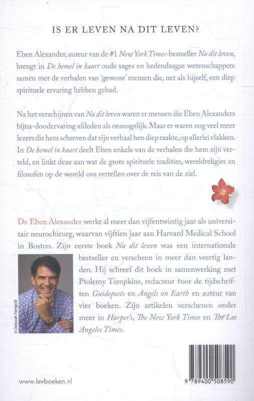 Na het verschijnen van Na dit leven waren er mensen die Eben Alexanders bijna-doodervaring afdeden als onmogelijk. Maar er waren nog veel meer lezers die hem schreven dat zijn verhaal hen diep raakte, op allerlei vlakken. In De hemel in kaart deelt Eben enkele van de verhalen die hem zijn verteld, en linkt deze aan wat de grote spirituele tradities, wereldreligies en filosofen op de wereld ons vertellen over de reis van de ziel.