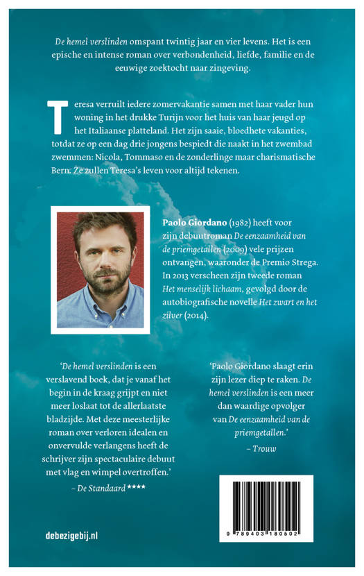 De hemel verslinden omspant twintig jaar en vier levens. Het is een epische en intense roman over verbondenheid, liefde, familie en de eeuwige zoektocht naar zingeving.