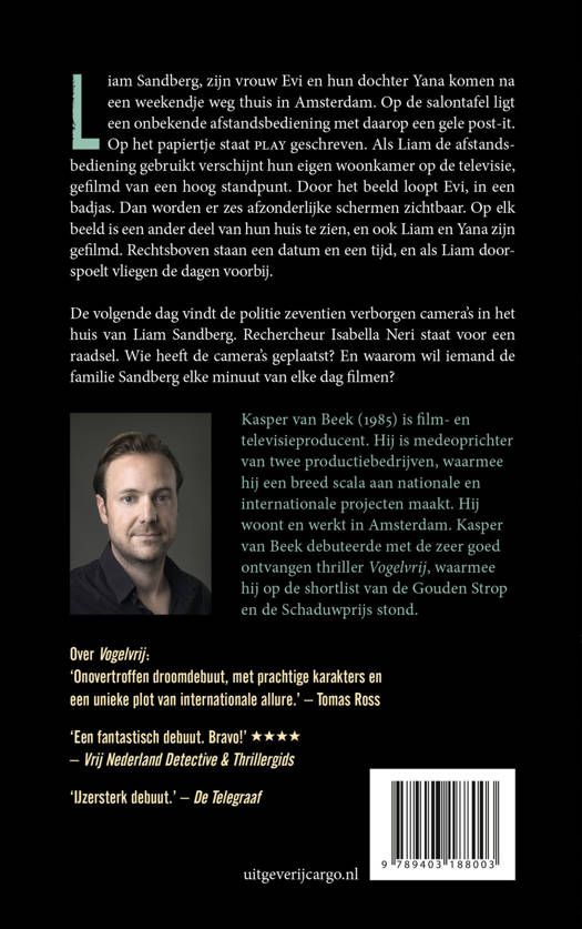 De volgende dag vindt de politie zeventien verborgen camera’s in het huis van Liam Sandberg. Rechercheur Isabella Neri staat voor een raadsel. Wie heeft de camera’s geplaatst? En waarom wil iemand de familie Sandberg elke minuut van elke dag filmen?