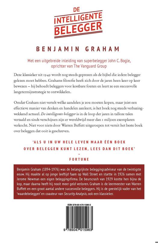 De klassieker 'De intelligente belegger' uit 1949 wordt zelfs na ruim 70 jaar nog steeds geprezen als de bijbel die iedere belegger gelezen moet hebben. De filosofie van Benjamin Graham heeft zich door de jaren heen keer op keer bewezen – hij behoedt beleggers voor kostbare fouten en leert ze een succesvolle langetermijnstrategie te ontwikkelen. Omdat Graham niet vertelt wélke aandelen je zou moeten kopen, maar juist een effectieve manier van denken en handelen aanleert, is het boek nog steeds verbazingwekkend actueel. 'De intelligente belegger' is in de loop der jaren in talloze talen vertaald en sinds verschijnen zijn er wereldwijd meer dan 1 miljoen exemplaren verkocht. Niet voor niets door Warren Buffet uitgeroepen tot verreweg het beste boek over beleggen dat ooit is geschreven. Met een uitgebreide inleiding van superbelegger John C. Bogle, oprichter van The Vanguard Group.