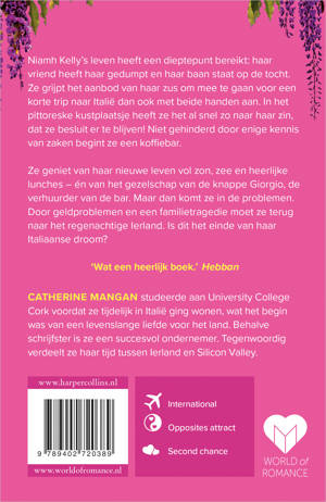 Niamh Kelly’s leven heeft een dieptepunt bereikt: haar vriend heeft haar gedumpt en haar baan staat op de tocht. Ze grijpt het aanbod van haar zus om mee te gaan voor een korte trip naar Italië dan ook met beide handen aan. In het pittoreske kustplaatsje heeft ze het al snel zo naar haar zin, dat ze besluit er te blijven! Niet gehinderd door enige kennis van zaken begint ze een koffiebar.