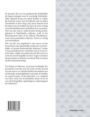Iko’s werk voor de katholieke missie en de rol van zijn belangrijkste opdrachtgever, Jos Schmutzer. Deze leek en suikermagnaat stond aan de basis van een opmerkelijke mengvorm van christelijke en Javaans-Hindoeïstische motieven, die dankzij het uitzonderlijke talent van Iko gestalte kregen.
