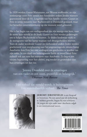 Het waargebeurde verhaal van het gevecht van een vader en een zoon om te overleven – nu in midprice!In 1939 werden Gustav Kleinmann, een Weense stoffeerder, en zijn zestienjarige zoon Fritz samen met honderden andere Joodse mannen gearresteerd door de SS. Losgerukt van hun familie werden Gustav en Fritz in eerste instantie naar Buchenwald in Duitsland gestuurd, waar het beruchte concentratiekamp op dat moment werd gebouwd.Het is het begin van een oorlogsverhaal dat zijn weerga niet kent, voor de eerste keer verteld in dit boek. Gustav en Fritz werden gedwongen om te helpen Buchenwald te bouwen. Ze deden loodzwaar werk in de steengroeve van het kamp waaraan veel dwangarbeiders stierven. Toen de ouder wordende Gustav en vierhonderd andere Joden werden geselecteerd voor overplaatsing naar het angstaanjagende nieuwe kamp Auschwitz, kon Fritz het niet verdragen om gescheiden te worden van zijn vader. In een daad van buitengewone liefde en moed bood Fritz zichzelf ook aan voor het transport naar Auschwitz. Zo begon een nieuwe beproeving voor hen allebei, nog wreder en gruwelijker dan hun ervaringen tot dan toe.De pers over De jongen die zijn vader naar Auschwitz volgde