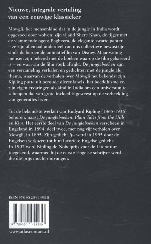 Mowgli, het mensenkind dat in de jungle in India wordt opgevoed door wolven; zijn vijand Shere Khan, de tijger met de vlammende ogen; Bagheera, de elegante zwarte panter – ze zijn allemaal onderdeel van ons collectieve bewustzijn sinds de beroemde animatiefilm van Disney. Maar weinig mensen zijn bekend met de boeken waarop de film gebaseerd is – en waarvan de film sterk afwijkt. De jungleboeken zijn een verzameling verhalen en gedichten met de jungle als thema, waarvan de verhalen over Mowgli het bekendst zijn. Kipling putte uit oeroude dierenfabels, het boeddhisme en zijn eigen ervaringen als kind in India om een universum te scheppen dat van grote invloed is geweest op de verbeelding van generaties lezers.