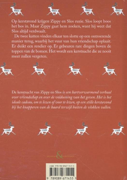 Op kerstavond krijgen Zippy en Slos ruzie. Slos loopt boos het bos in. Maar Zippy gaat hem zoeken, want hij weet dat Slos altijd verdwaalt. De twee katten vinden elkaar tenslotte op een ontroerende manier terug, waarbij het vuur van hun vriendschap oplaait. Er duikt een rendier op. Er gebeuren rare dingen boven de toppen van de bomen. Het wordt een kerstnacht die ze nooit meer zullen vergeten.