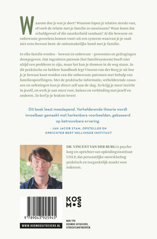 In elke familie worden gewoontes en gedragingen doorgegeven. Dat ingesleten patroon (het familiesysteem) kan je dromen in de weg staan. In ‘De kracht van familieopstellingen’ legt Vincent van der Burg uit hoe je je bewust kunt worden van die onbewuste patronen met behulp van familieopstellingen.