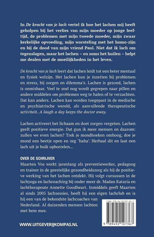 In De kracht van je lach vertel ik hoe het lachen mij heeft geholpen bij het verlies van mijn moeder op jonge leeftijd, de problemen met mijn tweede moeder, mijn zwaar kerkelijke opvoeding, mijn worsteling met het homo-zijn en bij de dood van mijn vriend Paul. Niet dat ik lach om tegenslagen, maar het lachen – en soms het huilen – helpt me dealen met de moeilijkheden in het leven.