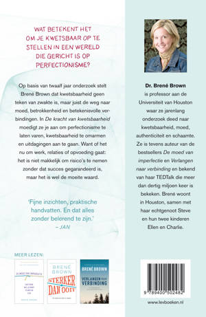 Ze moedigt de lezer in De kracht van kwetsbaarheid aan om perfectionisme te laten varen, kwetsbaarheid te omarmen en uitdagingen aan te gaan.