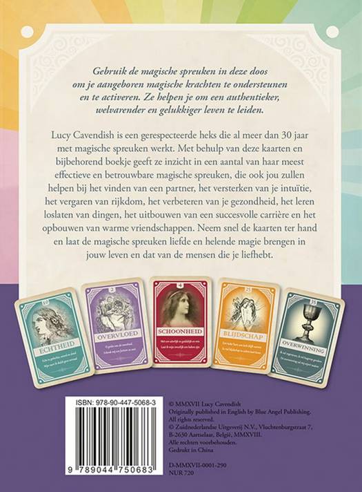 Gebruik de magische spreuken in deze doos om je aangeboren magische krachten te ondersteunen en te activeren. Ze helpen je om een authentieker, welvarender en gelukkiger leven te leiden. Lucy Cavendish is een gerespecteerde heks die al meer dan 30 jaar met magische spreuken werkt. Met behulp van deze kaarten en bijbehorend boekje geeft ze inzicht in een aantal van haar meest effectieve en betrouwbare magische spreuken, die ook jou zullen helpen bij het vinden van een partner, het versterken van je intuïtie, het vergaren van rijkdom, het verbeteren van je gezondheid, het leren loslaten van dingen, het uitbouwen van een succesvolle carrière en het opbouwen van warme vriendschappen. Neem snel de kaarten ter hand en laat de magische spreuken liefde en helende magie brengen in jouw leven en dat van de mensen die je liefhebt.
