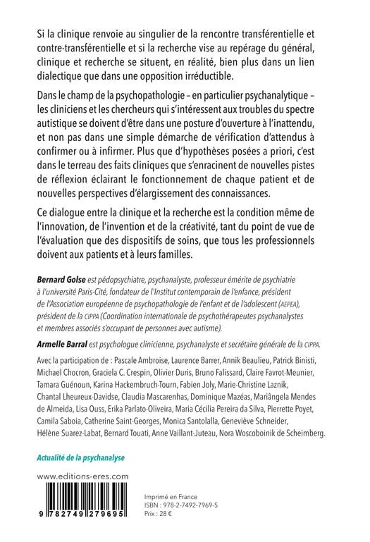 Dans le champ de la psychopathologie – en particulier psychanalytique - les cliniciens et les chercheurs qui s’intéressent aux troubles du spectre autistique se doivent d’être dans une posture d’ouverture à l’inattendu, et non pas dans une simple démarche de vérification de faits attendus à confirmer ou à infirmer. Plus que d’hypothèses posées à priori, c’est dans le terreau des faits cliniques que s’enracinent de nouvelles pistes de réflexion éclairant le fonctionnement de chaque patient et de nouvelles perspectives d’élargissement des connaissances.
