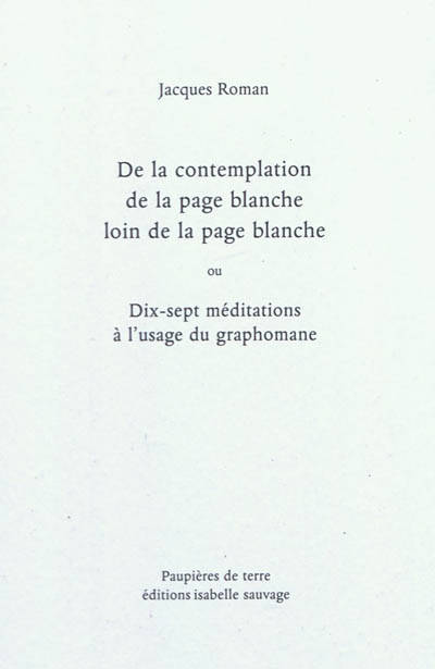 De la contemplation de la page blanche loin de la page blanche ou Dix-sept méditations à l'usage du graphomane