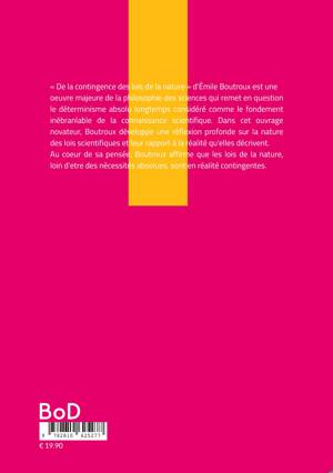 « De la contingence des lois de la nature » d'Émile Boutroux est une oeuvre majeure de la philosophie des sciences qui remet en question le déterminisme absolu longtemps considéré comme le fondement inébranlable de la connaissance scientifique. Dans cet ouvrage novateur, Boutroux développe une réflexion profonde sur la nature des lois scientifiques et leur rapport à la réalité qu'elles décrivent. Au coeur de sa pensée, Boutroux affirme que les lois de la nature, loin d'etre des nécessités absolues, sont en réalité contingentes. Cette thèse audacieuse s'inscrit dans le domaine de l'épistémologie et ouvre de nouvelles perspectives sur notre compréhension du monde physique. L'auteur examine minutieusement les différents niveaux de la réalité, des mathématiques à la biologie, en passant par la physique et la chimie, pour démontrer que chaque niveau possède un degré d'indétermination irréductible. Boutroux s'attaque ainsi au dogme du déterminisme universel, hérité de la mécanique newtonienne, qui avait dominé la pensée scientifique depuis le XVIIIe siècle. Il argumente que la causalité stricte, supposée régir tous les phénomènes naturels, n'est qu'une approximation de la réalité, et non une vérité absolue. Cette remise en question s'inscrit dans la tradition de la philosophie critique, tout en ouvrant la voie à une conception plus souple et dynamique de la science. L'ouvrage explore également les implications métaphysiques de cette contingence des lois naturelles. Boutroux suggère que cette indétermination fondamentale laisse une place à la liberté humaine et à la créativité dans l'univers. Cette réflexion sur la liberté et le déterminisme fait écho aux débats contemporains en philosophie de l'esprit et en éthique. « De la contingence des lois de la nature » a eu un impact considérable sur la pensée philosophique et scientifique de son époque. Il a contribué à ébranler les certitudes du positivisme scientifique et a ouvert la voie à une vision plus nuancée et complexe de la relation entre science et réalité. L'oeuvre de Boutroux reste d'une actualité surprenante, offrant des perspectives fécondes pour repenser les fondements de notre connaissance scientifique à l'ère de la physique quantique et des théories du chaos.