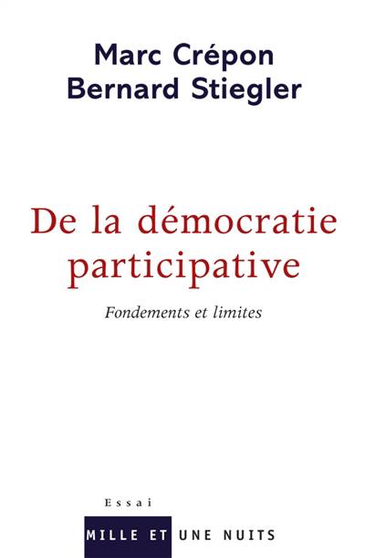 La participation est-elle réductible à une prise de parole puis àun bulletin dans une urne ? En quoi les technologies dites collaborativespeuvent-elles contribuer à la mise en oeuvre d?une nouvellesorte de démocratie, et en quoi ne peuvent-elles pas y suffire ? Laparticipation ne concerne-t-elle pas l?organisation de toute l?économiepolitique industrielle telle qu?elle se met en place en cedébut de XXIe siècle ? Chacun ne sent-il pas que, faute d?une nouvelleparticipation des hommes à la construction de leur avenirdans toutes ses dimensions, et comme nouvelle forme de civilisation,le monde court à sa perte ?