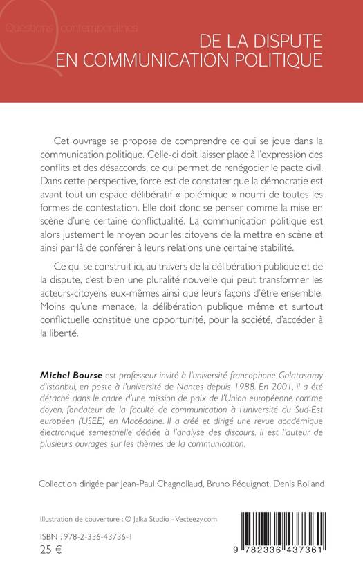Cet ouvrage propose de comprendre ce qui se joue dans la communication politique. Celle-ci doit laisser place à l'expression des conflits et des désaccords, ce qui permet de renégocier le pacte civil. Dans cette perspective, force est de constater que la démocratie est avant tout un espace délibératif polémique nourri de toutes les formes de contestation. Elle doit donc se penser comme la mise en scène d'une certaine conflictualité. La communication politique est alors le moyen pour les citoyens de la mettre en scène et par là de conférer à leurs relations une certaine stabilité. Ce qui se construit ici, au travers de la délibération publique et de la dispute, c'est bien une pluralité nouvelle qui peut transformer les acteurs-citoyens et leurs façons d'être ensemble. Moins qu'une menace, la délibération publique même et surtout conflictuelle constitue une opportunité, pour la société, d'accéder à la liberté.