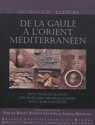 Ce volume est issu du colloque international d'archéologie intitulé Les mobiliers archéologiques dans leur contexte, de la Gaule à l'Orient méditerranéen : fonctions et statuts tenu à l'université de Poitiers.