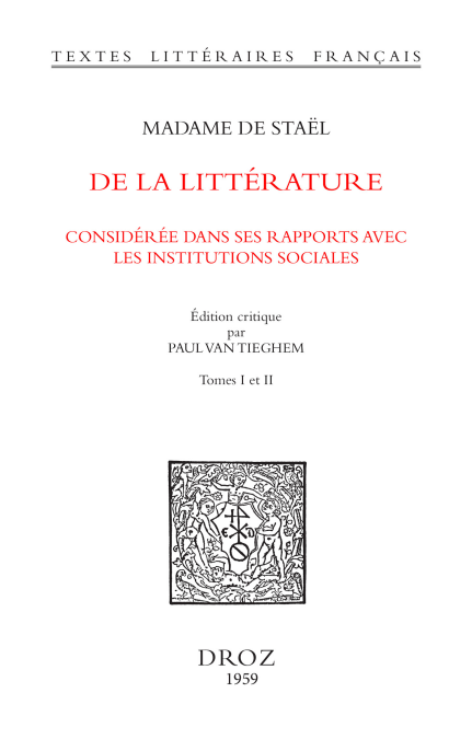 Au sortir de la seconde guerre mondiale, en 1945, Eugénie Droz fondait les Textes Littéraires Français, une collection dévolue à l’édition critique des textes significatifs du patrimoine littéraire de langue française du moyen âge au XXe siècle. Accessibles, dans un petit format maniable, chaque édition est accompagnée d’une introduction, de notes, d’un glossaire, si nécessaire, et d’index. Cet appareil critique exigeant accueille l’érudition des meilleurs spécialistes pour éclairer la genèse des œuvres et, quelle que soit leur époque, livrer au lecteur contemporain les explications les plus minutieuses sur le contexte historique, culturel et linguistique qui les a vues naître. Depuis soixante-dix ans, la collection a accueilli, outre quelques édicules, plus de 600 monuments littéraires français.