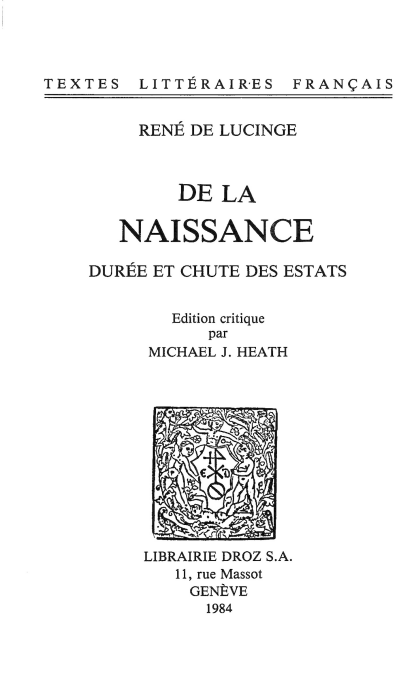 C'est là le principal ouvrage de René de Lucinge, son traité sur les Turcs, qui n'a pas été imprimé depuis 1614. Entre sa parution, en 1588, et cette dernière date, il a été traduit en italien, en latin et en anglais, mais depuis lors il était tombé dans un injuste oubli. L'immense empire turc, au XVIe siècle, représentait pour l'Europe entière une menace quotidienne. Les corsaires ravageaient la Méditerranée, et les armées du Sultan visaient Venise et ses possessions. Lucinge, qui a participé à une expédition contre les Turcs en 1573, au lendemain de Lépante, savait de qui il parlait. Il décrit leur organisation, leur force, et propose des moyens, parfois machiavéliques, pour les défaire. Vision d'un témoin, réflexion d'un homme politique des plus fins, sur une situation qui n'est pas sans analogie avec celle de notre XXe siècle.