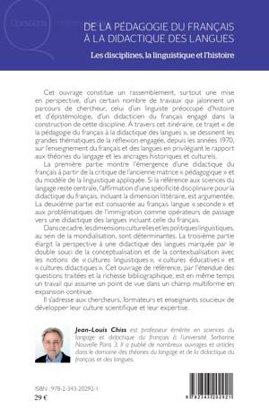 Cet ouvrage constitue la mise en perspective de travaux qui jalonnent le parcours de chercheur de l'auteur. À travers cet itinéraire, se dessinent les grandes thématiques de la réflexion qu'il a engagée depuis les années 1970, sur l'enseignement du français et des langues en privilégiant le rapport aux théories du langage et les ancrages historiques et culturels. La première partie montre l'émergence d'une didactique du français à partir de la critique de l'ancienne matrice « pédagogique » et du modèle de la linguistique appliquée. La deuxième partie est consacrée au français langue « seconde » et aux problématiques de l'immigration comme opérateurs de passage vers une didactique des langues incluant celle du français. La troisième partie élargit la perspective à une didactique des langues marquée par le double souci de la conceptualisation et de la contextualisation avec les notions de « cultures linguistiques », « cultures éducatives » et « cultures didactiques ».