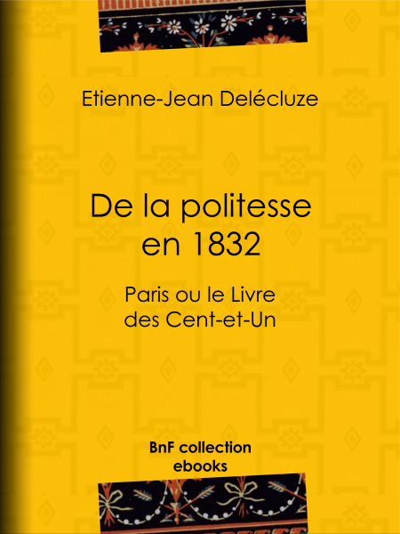 BnF collection ebooks - "J'ai parlé de la barbarie de ce temps, puis des barbus d'autrefois et d'aujourd'hui; il ne me reste plus que quelques mots à dire sur la politesse en 1832 et en 1833. Il y a un peu plus de deux mille ans qu'il a été reconnu que de la morale dérive la politique. C'est une vérité qui a fait peu de progrès dans ses applications, quoiqu'il reste démontré que le but de cette dernière science, la politique soit de combattre l'égoïsme naturel à l'homme..."