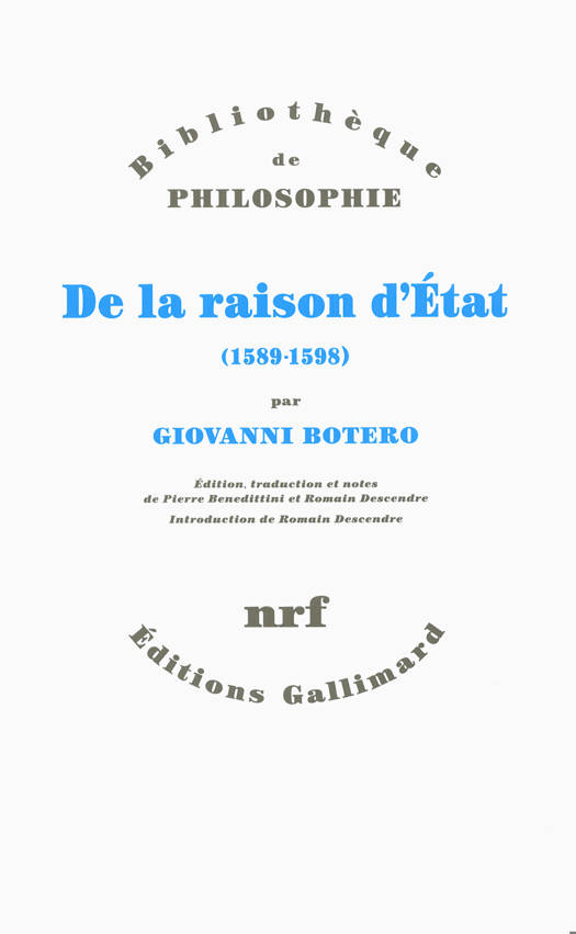 De la raison d'État, dont l'édition princeps date de 1589, compte parmi les livres qui ont le plus profondément marqué la modernité politique à ses commencements. Non seulement il a consacré la notion de raison d'État, mais il a également apporté une contribution décisive à la première affirmation européenne de l'idée d'"État". Giovanni Botero ( 1544-1617), ancien jésuite, secrétaire de grands princes d'Église et consulteur de la congrégation de l'Index, y poursuit comme objectif de codifier la rationalité gouvernementale de cette nouvelle entité politique. L'"État" dit désormais la puissance publique entendue comme seigneurerie sur les hommes et domination sur les territoires, dans une direction qui intègre la leçon machiavélique - bien que l'auteur s'en défende - et rompt avec la tradition éthico-juridique qui avait procuré à la politique son langage. À l'heure des guerres de Religion mais à l'écart des théorisations juridico-politiques de l'époque, la ratio de Botero définit avant tout les savoirs permettant de conserver cette seigneurerie et domination, sous trois aspects essentiels : le gouvernement des hommes, la gestion des richesses, l'administration des territoires. Identification du politique à l'étatique et institution des savoirs du monde social nécessaires à l'État territorial : tels sont les deux traits dont la conjonction fait la modernité de l'ouvrage. Cette traduction (la première en français depuis 1599) a aussi été l'occasion d'un travail d'édition scientifique sans précédent (y compris en Italie) à partir des quatre versions revues et corrigées par l'auteur. Elle remet dans la circulation intellectuelle un "classique inconnu", toujours cité, mais rarement lu.