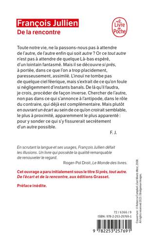 Cet ouvrage a paru initialement sous le titre Si près, tout autre. De l’écart et de la rencontre, aux éditions Grasset.
