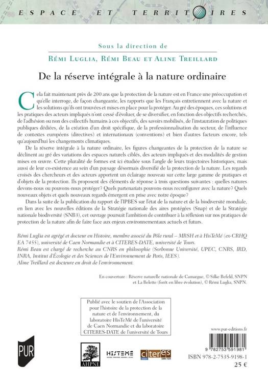 De la réserve intégrale à la nature ordinaire, les figures changeantes de la protection de la nature se déclinent au gré des variations des espaces naturels ciblés, des acteurs impliqués et des modalités de gestion mises en oeuvre. Cette pluralité de formes est ici étudiée sous l’angle de leurs trajectoires historiques, mais aussi de leur co-existence au sein d’un paysage désormais diversifié de la protection de la nature. Les regards croisés des chercheurs et des acteurs apportent un éclairage nouveau sur cette large gamme de pratiques et d’objets de la protection. Ils proposent des éléments de réponse à trois questions suivantes : quelles natures devons-nous ou pouvons-nous protéger ? Quels partenariats pouvons-nous reconfigurer avec la nature ? Quels nouveaux objets et quels nouveaux regards émergent en prise avec notre époque ?