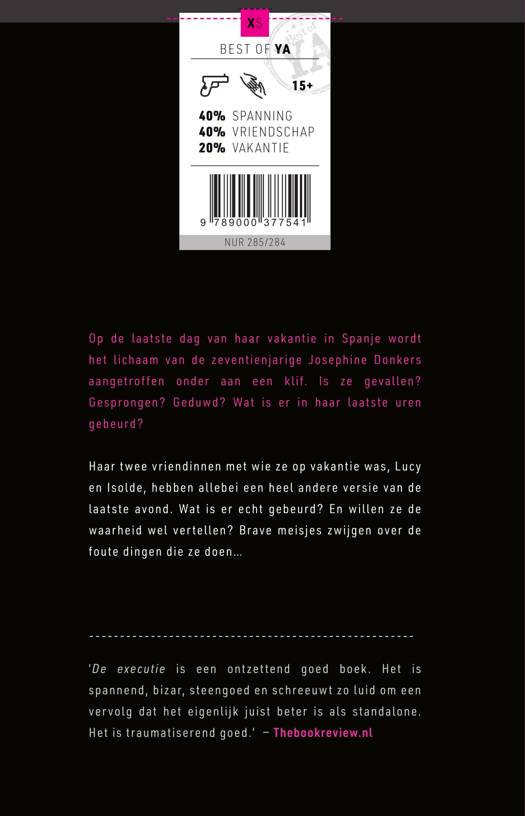 Dit boek is onderdeel van de Best of YA | XS-reeks. Meer lezen uit deze reeks? Lees ook: • Mirjam Mous – Girl 6 • Esther Walraven – Voor Yasmin • Buddy Tegenbosch – Mijn nacht met Vedder • Saskia Mouissie – De belofte • Mijke Pelgrim – Over straatfiguren en wegpiraten • Henk Hardeman – Wat gebeurde er met David? • Mirjam Mous – Welkom in Smartpark • Esther Walraven – Wind