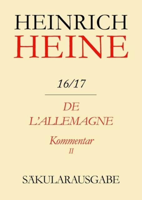 Der hier vorliegende zweite Teilband des Kommentars zu den Textbänden 16 und 17 der Säkularausgabe bietet die Kommentierung zu den einzelnen Teilen von "De l'Allemagne II", den Anhangtexten in Band 17 und Nachträge. Die für das gesamte Werk gültigen Teile wurden bereits im Teilband 16/17K I vorgelegt: Die Überlieferung, ein Vorwort "Heines De l'Allemagne - Ein neues Deutschlandbild in Frankreich?" und die Entstehungsgeschichte, ferner für "De l'Allemagne I" die Überlieferungen, Mitteilungen zum Text und Erläuterungen sowie Kommentare zu den Anhängen des Textbandes 16. Eine Konkordanz im zweiten Teilband weist die Unterschiede zwischen der 1855 bei Michel Lévy frères erschienenen Ausgabe von "De l'Allemagne" (Bände 16 und 17) und den entsprechenden deutschen Texten (in den Bänden 6, 8, 9 und 12 unserer Ausgabe) nach, wenn diese Abweichungen mindestens einen Satz umfassen. Mit dem Erscheinen dieses Bandes liegt die Zweite Abteilung (Werke in französischer Sprache, Band 13-19) mit allen Kommentarbänden vollständig vor.
