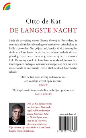 Sinds de bevrijding woont Emma Verweij in Rotterdam, in een straat die tijdens de oorlog een bastion van vriendschap en liefde is geworden. Nu, 96 jaar oud, bereidt zij zich voor op het einde van haar leven. In de laatste nachten herleeft zij haar gelukkige jaren, maar meer nog komt terug wat verdwenen leek. De oorlog spookt in haar door, ze verdwaalt in haar herinneringen en ondergaat opnieuw en heviger dan ooit het leven dat ze leefde en niet leefde. Het is alsof de dood haar wakker schudt.