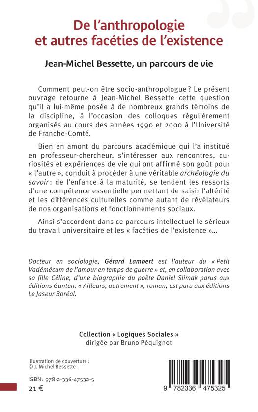 Comment peut-on être socio-anthropologue ? Le présent ouvrage retourne à Jean-Michel Bessette cette question qu’il a lui-même posée à de nombreux grands témoins de la discipline, à l’occasion des colloques régulièrement organisés au cours des années 1990 et 2000 à l’Université de Franche-Comté. Bien en amont du parcours académique qui l’a institué en professeur-chercheur, s’intéresser aux rencontres, curiosités et expériences de vie qui ont affirmé son goût pour « l’autre », conduit à procéder à une véritable archéologie du savoir : de l’enfance à la maturité, se tendent les ressorts d’une compétence essentielle permettant de saisir l’altérité et les différences culturelles comme autant de révélateurs de nos organisations et fonctionnements sociaux. Ainsi s’accordent dans ce parcours intellectuel le sérieux du travail universitaire et les « facéties de l’existence »…
