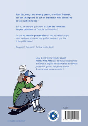 Internet a envahi notre quotidien. Il n'y a plus une heure sans qu'on ne soit mobilisé par une notification, un SMS, un mail... Internet a révolutionné notre façon d'apprendre, de communiquer, de partager l'information et la connaissance. Mais le monde numérique a aussi ses côtés obscurs et dangereux pour la santé de notre planète et pour nos libertés de citoyens. À travers deux grandes parties richement documentées, intelligemment illustrées par Walter Glassof, Michèle Mira Pons expose les enjeux contemporains liés à notre consommation des écrans et à nos pratiques numériques. De l'esclavage moderne au recyclage impossible en passant par la violation de la vie privée, ce documentaire, qui joue aussi le rôle de manuel, informe le lecteur sans le culpabiliser. Au terme de chacune des parties - industrie et pollution, puis liberté et données privées -, l'autrice donne des conseils pratiques pour moins polluer et quitter l'état de servitude (volontaire) dans lequel nous enferme le numérique !