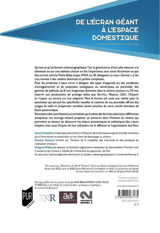 Réunissant des contributions et entretiens qui traitent des formats selon leurs différentes acceptions, cet ouvrage entend proposer un parcours dans l’histoire du cinéma qui permettra au lecteur de découvrir les enjeux économiques et esthétiques liés à leurs emplois, mais aussi l’impact de leur utilisation sur la diffusion et l’appréciation des films.
